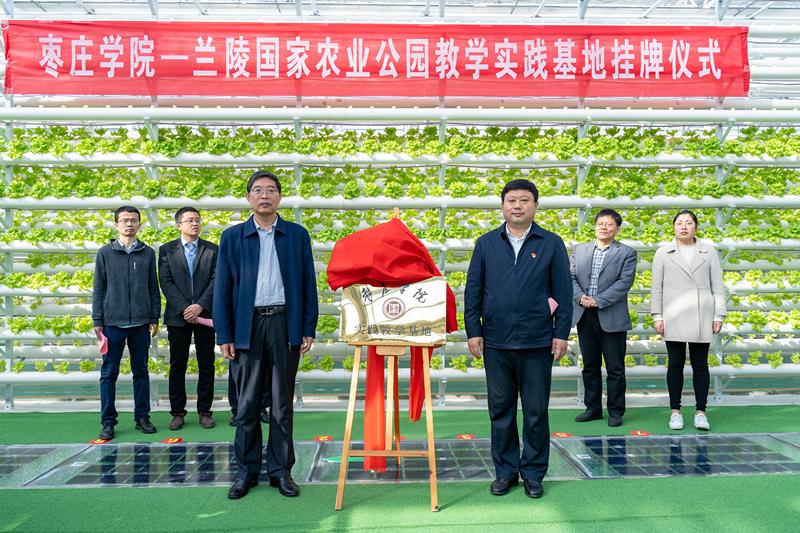 揭牌仪式上,王传喜代表兰陵国家农业公园致辞,对枣庄学院一行的到来表示欢迎,希望双方以此次签约揭牌为契机,加深校企合作,同时期待枣庄学院今后能够在新农人培训、公园设施栽培技术创新方面为兰陵国家农业公园提供大力帮助。兰陵国家农业公园作为全国最具影响力的蔬菜花卉集约化设施栽培园区,未来将成为枣庄学院大学生教学实践基地,可为枣庄学院高素质应用型农科人才培养提供现代化的实习实训平台。
