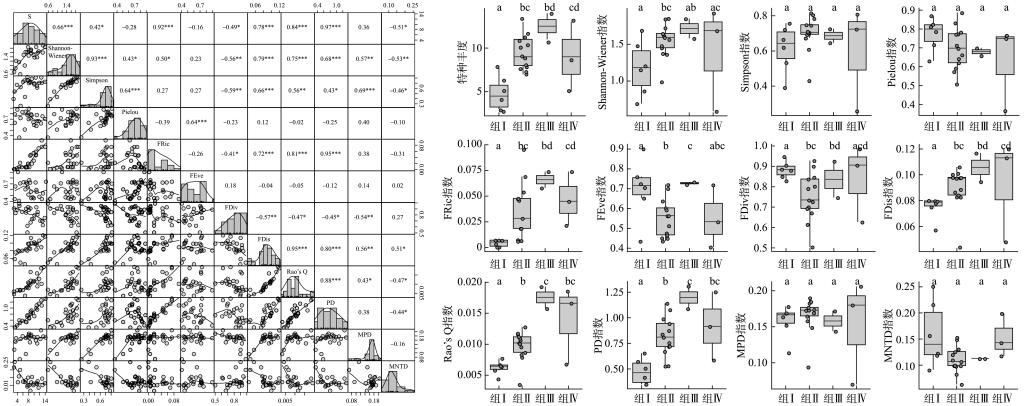 图2. 基于多维度多样性指数评价雅鲁藏布江流域鱼类多样性及群落组间差异比较
