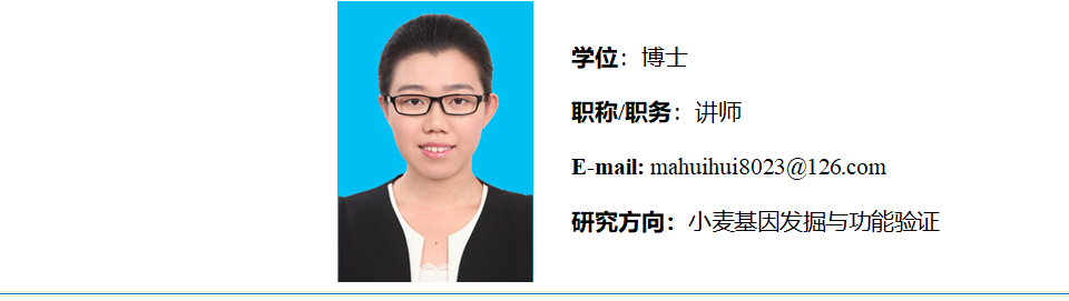 2019年6月毕业于中国农业科学院作物科学研究所,获得博士学位,同年进入枣庄学院开云kaiyun登录入口工作。主讲《分子生物学》和《文献检索与论文写作》、《生物制品标准与法规》等多门课程。主要从事小麦背景下外源染色体特异标记开发、相关基因发掘与功能验证方面的研究。近年来参与国家级课题多项,在《The Crop Journal》、《Euphytica》等期刊发表SCI论文多篇。
