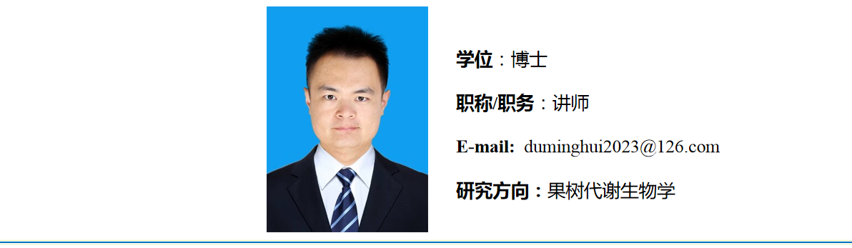 2023年6月毕业于山东农业大学获得园艺学博士学位,同年9月进入枣庄学院开云kaiyun登录入口工作。主要从事果树抗逆性的代谢生物学、生理学和分子生物学等的研究。近年来以第一作者和共同作者身份在《Plant Cell and Environment》和《Scientia Horticulturae》等国外学术期刊发表论文两篇。