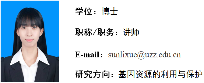 孙丽雪,女,2023年1月毕业于复旦大学植物学专业获得理学博士学位。2024年11月进入枣庄学院开云kaiyun登录入口工作。主要从事基因资源的利用与保护的相关研究。近五年来以第一作者或者共同作者在《Biology》、《Physiologia Plantarum》等刊物上发表SCI论文2篇。