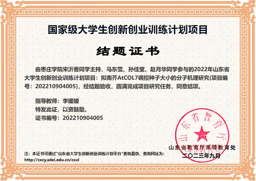 李媛媛深知科研与教学相辅相成,同等重要。因此,她坚持教学科研并重,不断探索学科发展前沿,围绕作物遗传育种开展深入研究,解析了多个重要功能基因调控作物生长发育和抗性的分子机制,为作物分子设计育种储备基因资源。自工作以来,她先后主持山东省自然科学基金项目、枣庄市科技发展计划项目、作物生物学国家重点实验室开放课题、枣庄学院博士科研启动项目以及企事业单位委托课题共8项,参与国家自然科学基金项目2项,科研总经费150余万元,以第一/并一作者和通讯作者身份发表科研论文6篇,其中中科院一区论文2篇,为学科发展贡献了自己的智慧和力量。