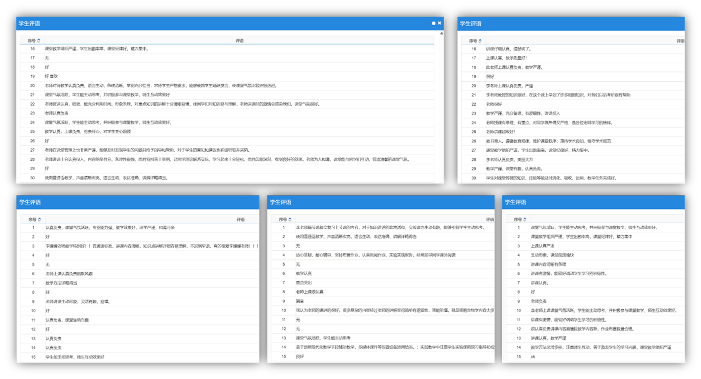 表1 教学质量评价统计表