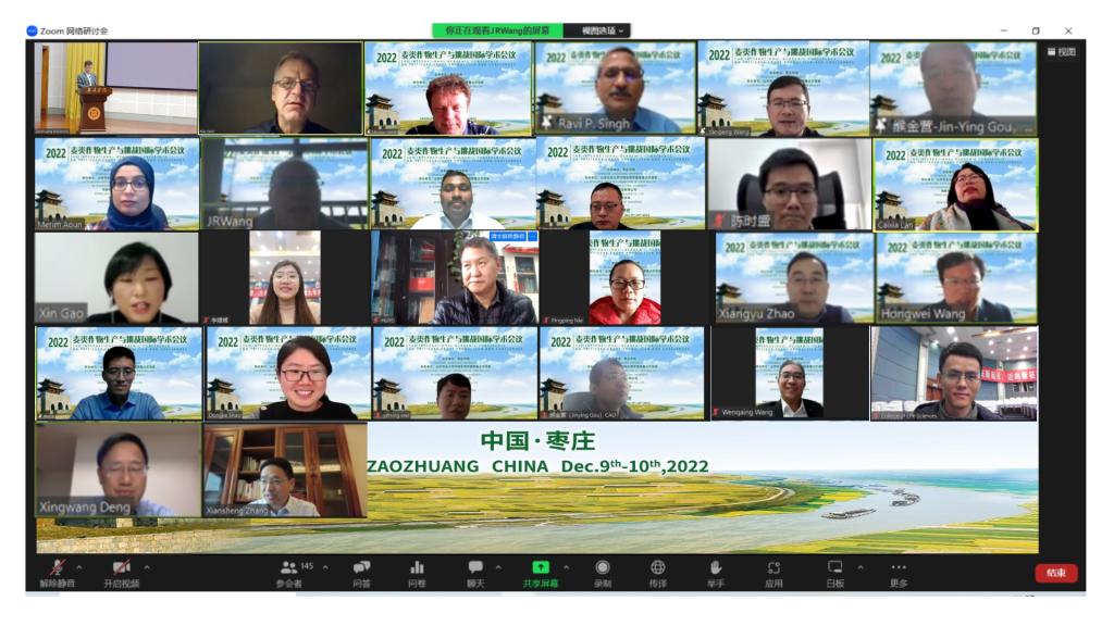 12月9日-10日,由枣庄学院、山东农业大学作物生物学国家重点实验室、泉脉农业科技有限公司、山东遗传学会联合举办的2022麦类作物生产与挑战国际学术会议,在枣庄学院通过Zoom会议成功举办。校党委副书记、校长李文喜出席会议并致辞,来自中国、美国、德国、墨西哥、匈牙利、捷克等国家的专家学者以及我校科技处、国际交流处负责人,开云kaiyun登录入口师生在线参加会议,会议由校党委委员、副校长李目海主持。
