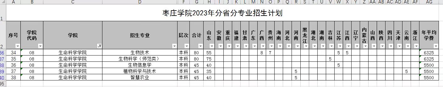 2023年度分省分专业招生计划