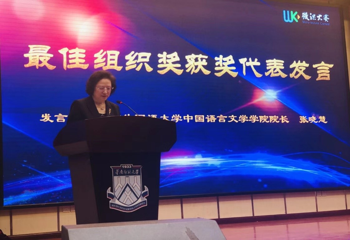 在颁奖典礼上张晓慧院长作为最佳组织奖获奖院校代表发言,充分肯定了汉语教学微课大赛在促进汉语线上和线下教学的应用普及、提高未来国际汉语师资信息技术应用能力,以及信息化时代汉语国际教育复合型人才培养等方面的积极意义,指出要充分利用“微课”这一新型教学形式便捷性和高效性,与互联网时代汉语国际教育、中国文化走出去的发展趋向相适应,在探索“互联网+汉语国际教育”的创新师资培养模式过程中展现出了自己独特的优势,最后表示Beat365将不忘初心、砥砺前行,与其他高校共同努力,迎接互联网时代汉语国际教育的美好未来。