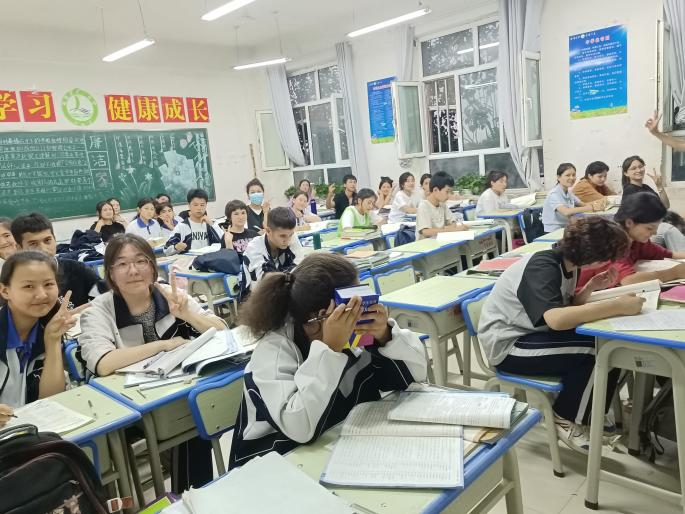 “低头是题海,抬头是未来”。这句话是我在漫长求学生涯中一句抽象的口号,在监考的那一刻,有了具象的体现。曾经老师对我的苦口婆心也成了我对学生们的希冀期望。那些不厌其烦解答问题的耐心,看到学生成绩提高时的欣慰,正确教导学生改正错误的指导,批改作业到深夜在窗外看到的星星,原来都有四字概括,叫教书育人。我突然惊觉一代一代教育工作者的青春,原来都是被这样伟大的使命之光照耀着。而我今天有幸因为枣院与喀什学校的支教计划,体会到教育确实会使人热泪盈眶,值得我们为之奋斗。