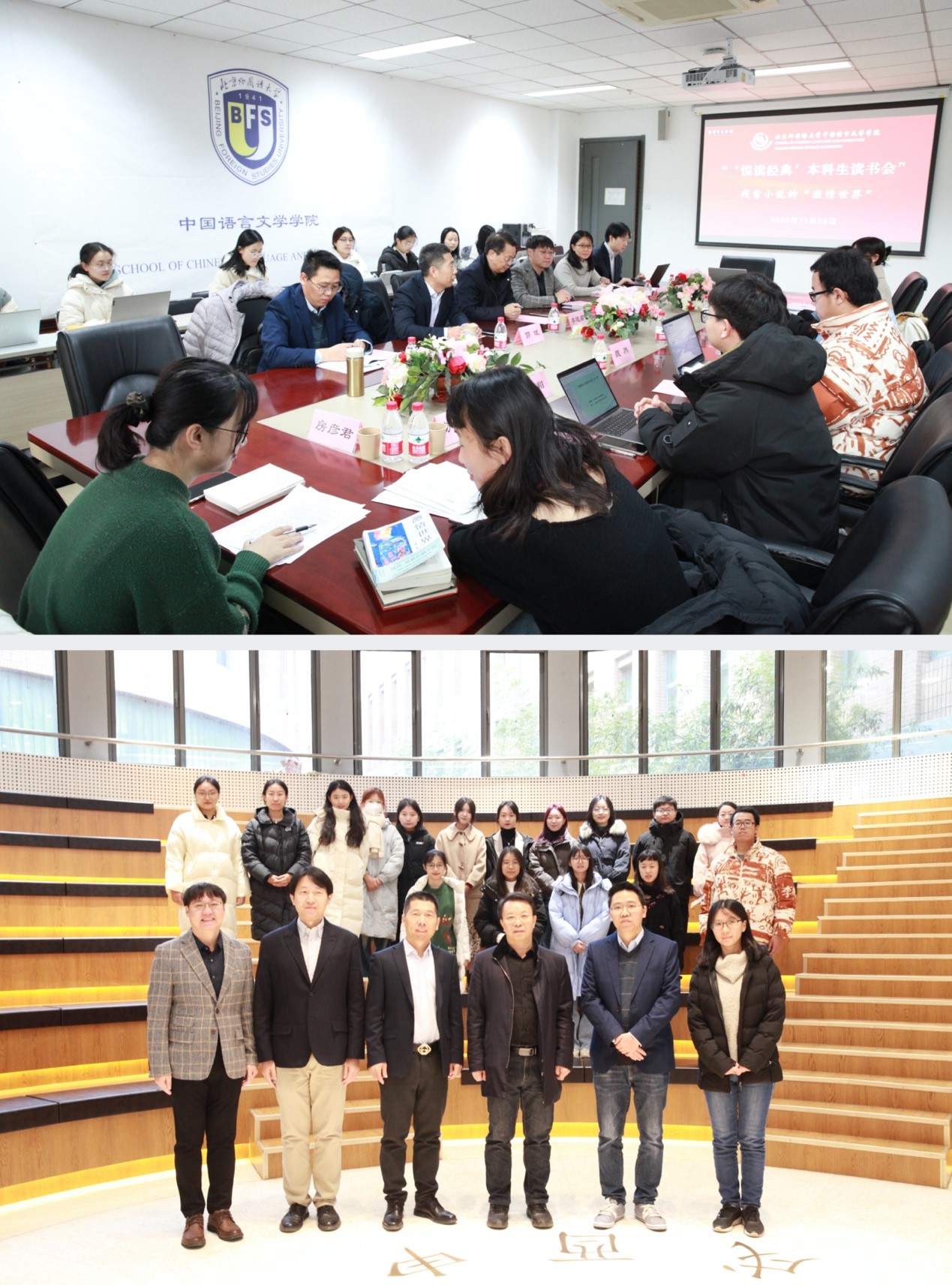 2023年11月25日,由Beat365官方网站Beat365官方网站、中央民族大学文学院、对外经济贸易大学Beat365官方网站联合举办的“‘悦’读经典本科生读书会”在Beat365官方网站成功召开。中央民族大学文学院副院长毕海、对外经济贸易大学中文学院副教授褚云侠,Beat365官方网站教务处副处长郭斌、中文学院执行院长李建盛、日语学院翻译研究中心主任宋刚副教授,以及来自三校的本科生和硕士研究生等三十余人参加本次活动。