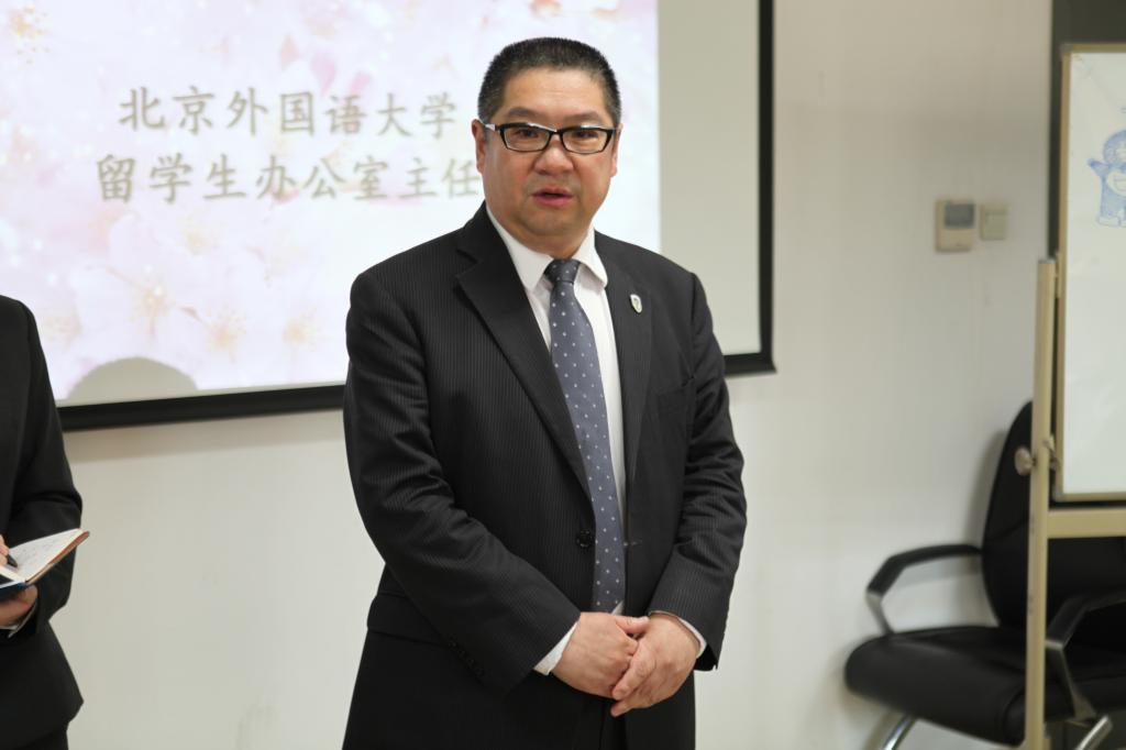 李冰主任代表学校,向新同学表达了热烈的欢迎。他介绍了北外的历史发展和办学特色,并表示学校会尽最大努力为同学们创造良好的生活环境和学习环境。