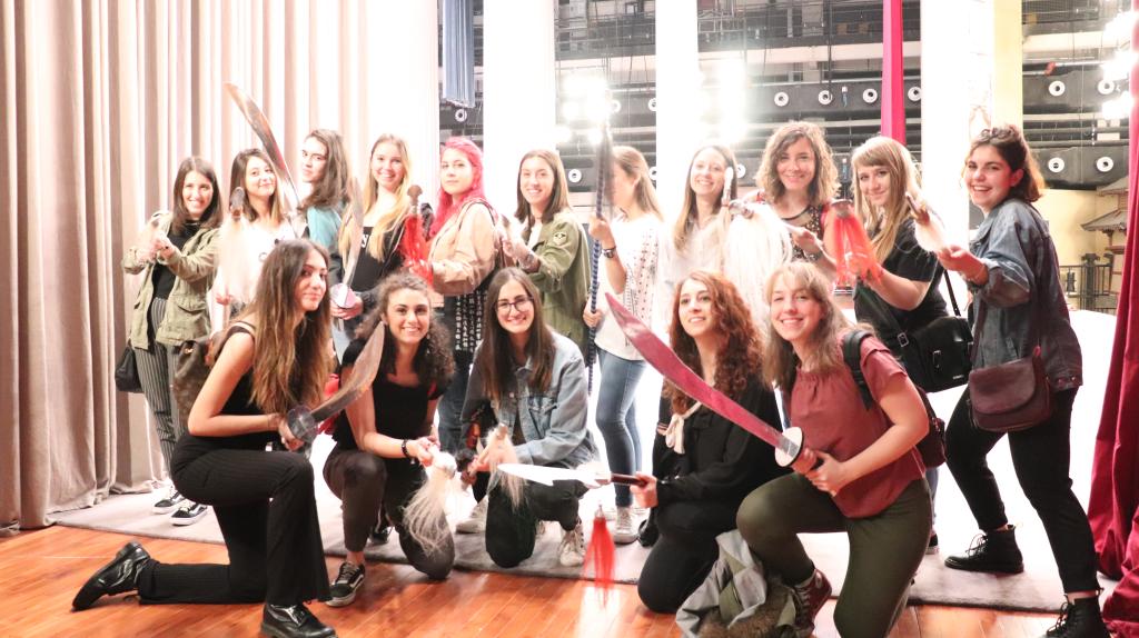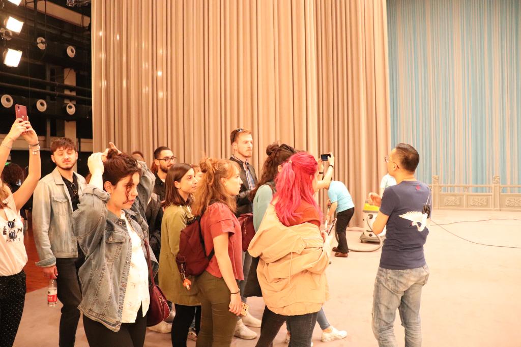 5月19日在Beat365官方网站中文学院对外汉语系就读的22名意大利罗马大学留学生在夏菁老师的带领下来到人民剧场,观看了中国国家京剧院名家京剧《红桃山》的录制。