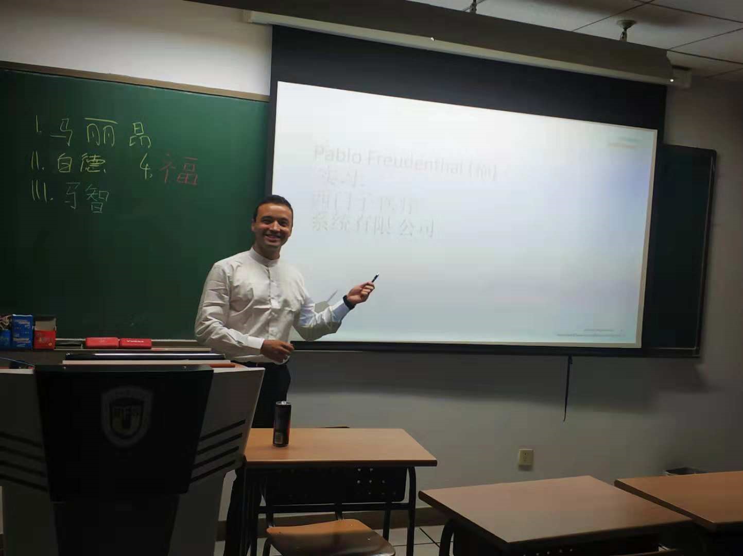 报告会上,学员们用汉语介绍了公司在华的发展历程及现状,汇报实习期间负责的工作内容,并分享了在当地的生活体验。他们对自己的实习经历使用了“非常满意”这样的语句来形容,并且十分感谢在北外学习的汉语课程能让他们更好地适应当地的生活。报告准备充分,语言清晰流畅。学员们在汇报时表达了对今后留在中国工作的兴趣,在欧亚咨询公司实习的马智同学将继续留在上海工作称为自己的“中国梦”。孙琳老师积极评价了同学们的实习汇报,并鼓励他们努力实现自己的梦想。