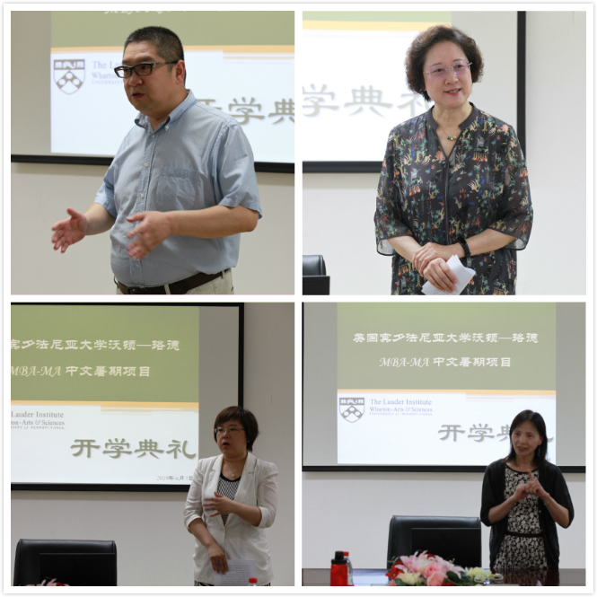 张晓慧院长在欢迎致辞中说,沃顿商学院一直以培养高端商务人才为已任,而中文学院也拥有长期的商务汉语教学传统,两个学院的合作,可谓相得益彰。她鼓励学员在为期五周的学习中不仅要提升语言水平,还要利用在中国的契机加深对中国社会的理解。李冰主任介绍了北外的多语种建设与国际化水平,并追本溯源,回顾了自中文项目“落地”北外以来近20年的发展历程。作为项目重要参与方和支持方,外研社综合语种教育出版分社社长崔岚介绍了外研社的发展历史及作用。