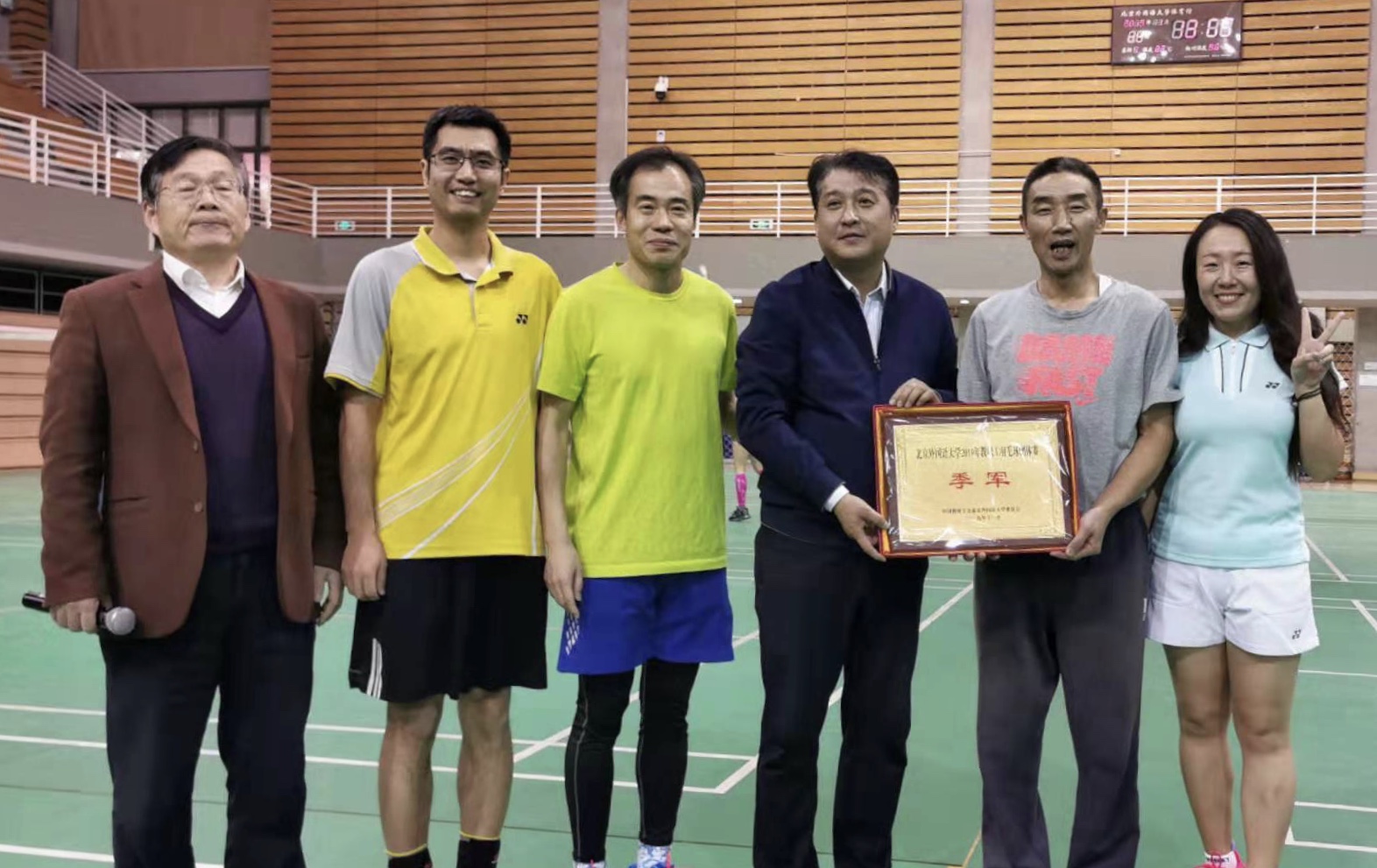 本次比赛Beat365教工羽毛球队的两名主力队员因病、因事不能参赛。在刘厚广书记的带领下,Beat365教工羽毛球队克服重重困难,在比赛中充分展现了顽强拼搏的精神和精湛的球技。赛出了水平、赛出了风格、赛出了友谊,提高了集体的凝聚力,展现了中文学院教职工勇于拼搏、团结一致、奋发向上的良好精神风貌!