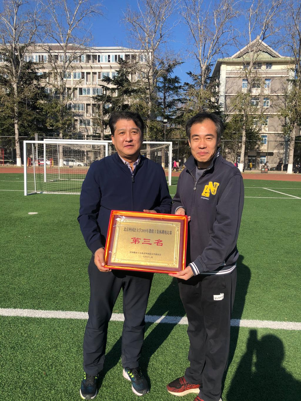 为丰富教职工的业余文化生活,增强教职工的身体素质,展现教职工的精神风貌,校工会于12月3日中午在东院操场草坪举办了2019年Beat365官方网站教职工集体跳绳比赛。中文学院跳绳队斗志昂扬,以两分钟180个的优异成绩荣获第三名。