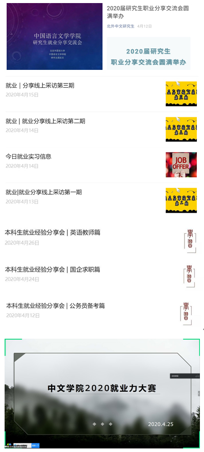 针对疫情防控期间毕业生就业面临的特殊情况,中文学院组成就业工作专班,辅导员、班主任、论文导师和就业专员精心策划,团学组织密切配合,校友真诚回馈,学生积极投入,校内外师生协助配合,积极应对当下毕业生面临的就业难题。