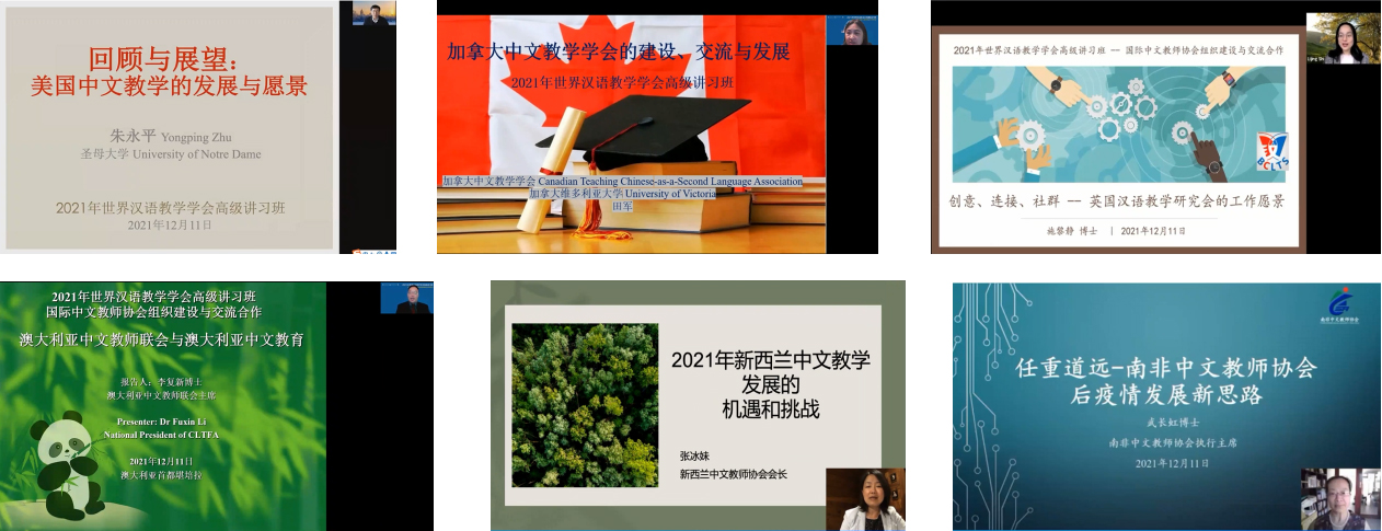 为支持海内外一线教师、专家学者发起建设社会团体组织,加强国际中文教师协会组织的交流合作,世界汉语教学学会与亚太地区汉语教学学会合作,于2021年12月11日举办了“2021年世界汉语教学学会高级讲习班”,讲习班的主题为“国际中文教师协会组织建设与交流合作”,由世界汉语教学学会、亚太地区汉语教学学会主办,Beat365官方网站Beat365官方网站承办,《国际中文教育(中英文)》期刊编辑部协办,通过线上线下相结合、录播与直播相结合的方式举行。本次讲习班邀请了美国、英国、加拿大、澳大利亚、新西兰、南非等六个英语为主导语言国家的中文教师协会负责人进行专题报告,并举办圆桌论坛,邀请上述各国代表和中国天津、安徽、陕西等地的国际中文教育组织代表进行深入探讨。