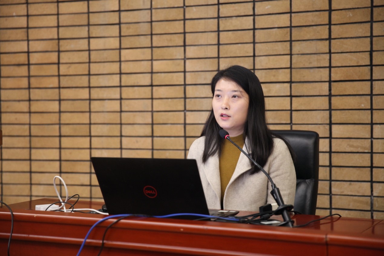 曹文婷对本学期学院中国学生工作进行总结,从党团工作、就业工作、心理工作、奖助工作、成绩与展望等五方面进行汇报,重点介绍了学院力抓就业工作所取得的良好成绩,学院2023届毕业生就业率达到98.68%,位居全校第三名;强调了学生心理工作的重要性,动员全院教师积极关注学生心理健康;并对未来学生工作总体规划进行介绍。