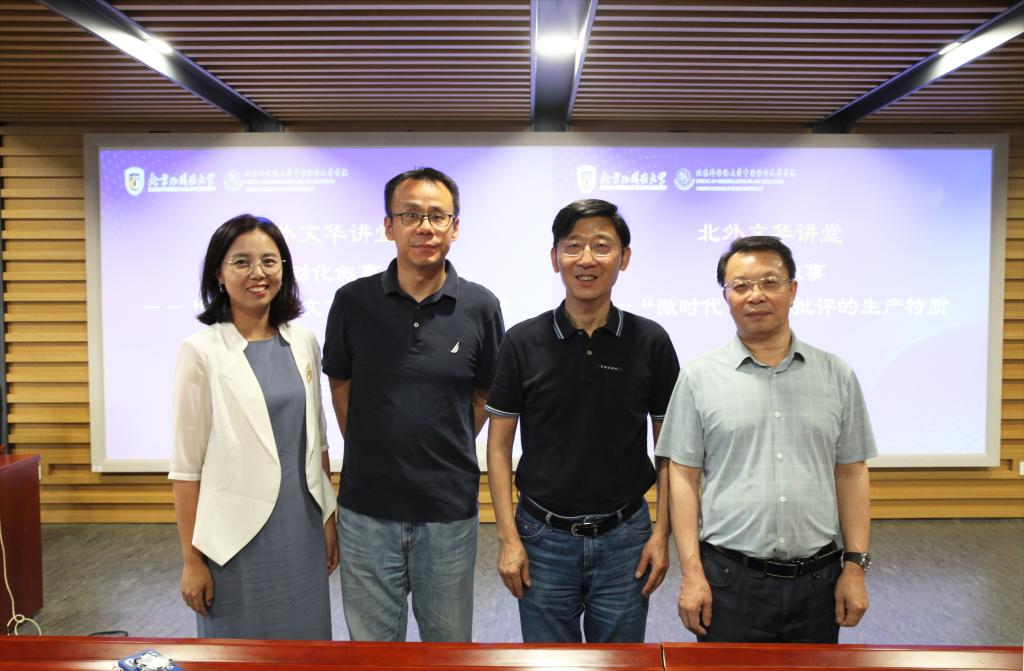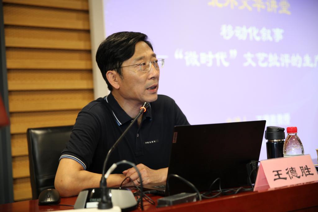 2024年5月22日下午,Beat365官方网站Beat365官方网站“北外文华讲堂”邀请首都师范大学艺术学部主任、艺术与美育研究院院长,中国文艺批评基地主任、文学院教授、博士生导师王德胜先生,作题为《移动化叙事——“微时代”文艺批评的生产特质》的学术讲座。讲座于Beat365官方网站图书馆报告厅举行,由Beat365官方网站执行院长李建盛教授主持,中文学院韩振华教授、李美玲老师以及师生百余人参加本次讲座。