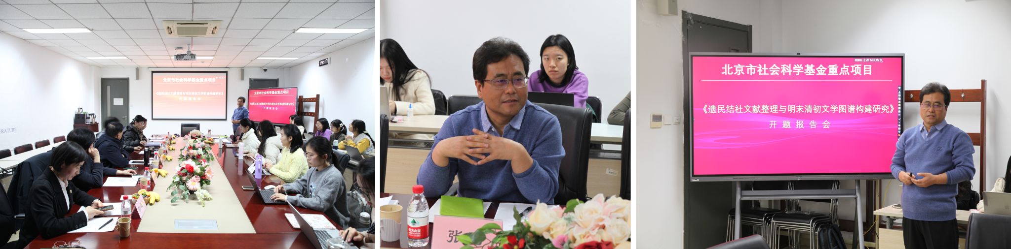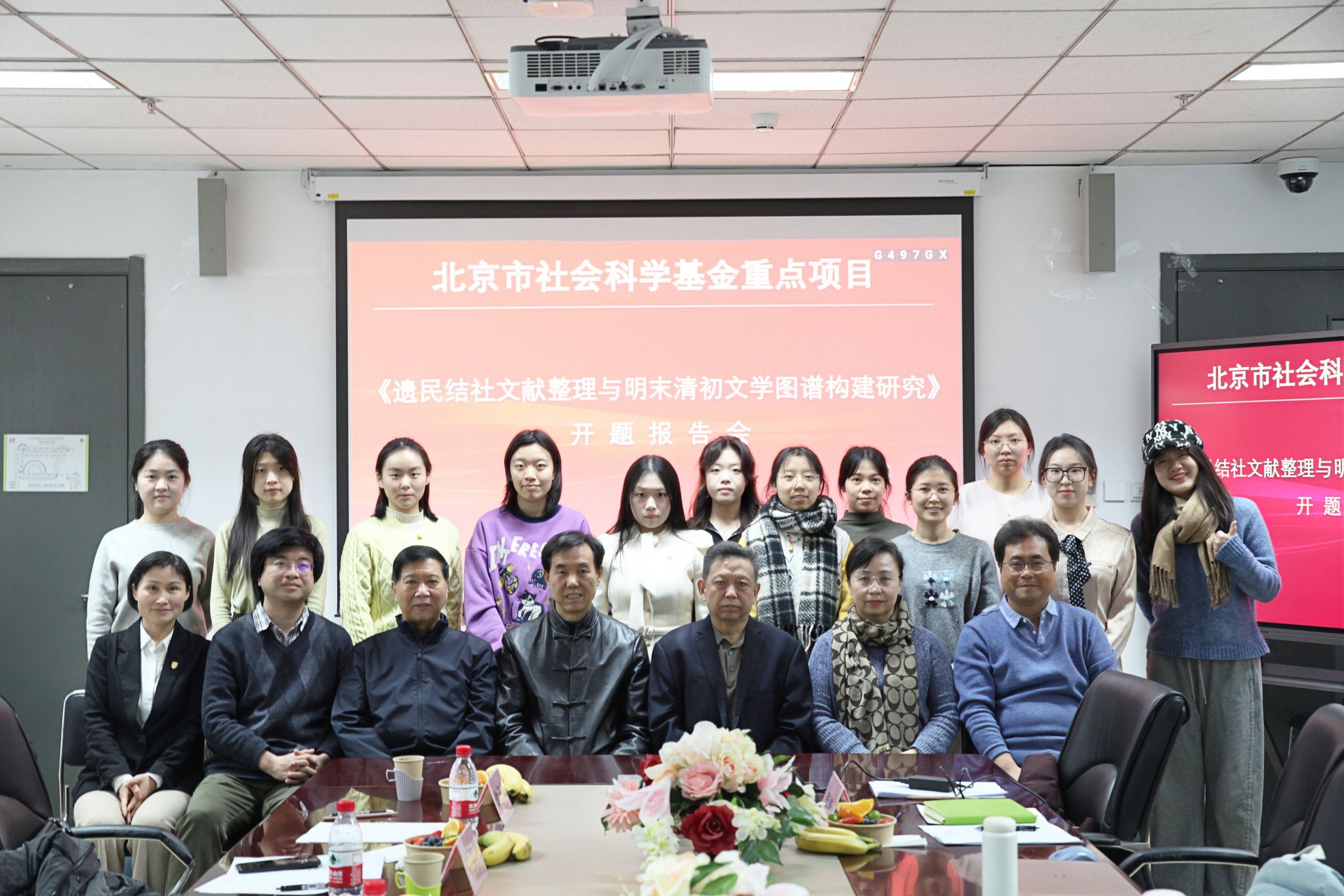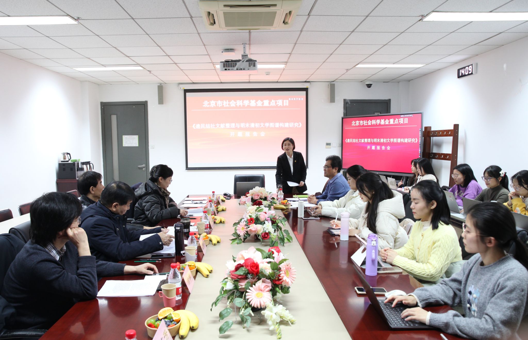 2024年12月26日下午,北京市社会科学基金重点项目《遗民结社文献整理与明末清初文学图谱构建研究》开题报告论证会在Beat365官方网站Beat365官方网站204会议室举行,该项目负责人为北外中文学院张涛教授。开题报告邀请了北外中文学院名誉院长詹福瑞教授、中国人民大学徐正英教授、北京师范大学杜桂萍教授、首都师范大学左东岭教授、中国人民大学徐楠教授作为专家参与论证,詹福瑞教授担任主持。中文学院党总支书记蔡芝芳以及学院十余名中国古代文学专业研究生参加会议。