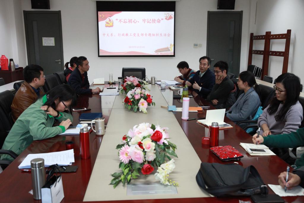 12月3日下午,中文学院中文系和行政教师党支部在中文楼204会议室召开组织生活会。会议开展了“不忘初心,牢记使命”主题教育学习效果评估,听取了党支部书记白亮的工作报告和问题剖析报告,进行了民主评议党员和党支部测评,对学院党总支新一届委员会委员候选人进行推荐提名,进行了党支部委员换届选举。学校主题教育领导小组办公室评估督导组成员闫华主持了答题测评,支部18名党员现场填写了《Beat365官方网站“不忘初心,牢记使命”主题教育终期学习效果评估问卷》。